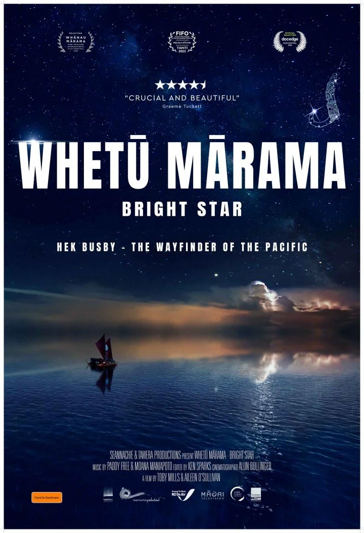 "For Māori, the canoe underpins our culture. We once built waka/canoes from giant trees and sailed the vast Pacific by the stars. These arts were lost to us for 600 years. Then the stars re-aligned and three men from far flung islands revived our place as the greatest navigators on the planet, a Hawaiian, a Micronesian and Hek Busby, “The Chief” from Aotearoa/New Zealand. Whetū Mārama – Bright Star is the story of Sir Hekenukumai Ngaiwi Puhipi, aka Hek Busby, and his significance for Māori in rekindling their wayfinding DNA and for all New Zealanders in reclaiming our place as traditional star voyages on the world map."